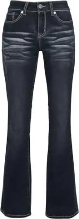 Damen dunkelblaue Jeans mit Waschung und Schlag W27L30