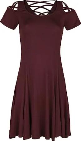 Damen Dunkelrotes Kleid mit dekorativer Schnürung L