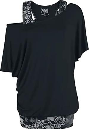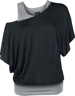 Damen schwarzes T-Shirt im Double-Layer-Look L