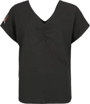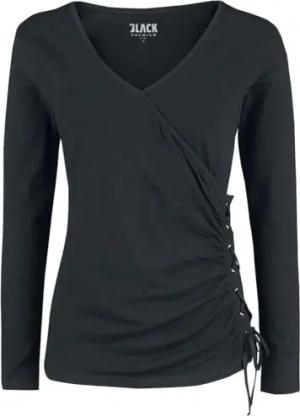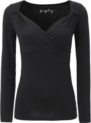 Damen schwarzes Langarmshirt mit V-Ausschnitt und Raffungen XS