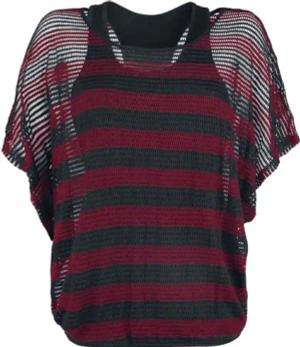 Damen rot-schwarzes T-Shirt mit Fledermausärmeln inklusive Top L