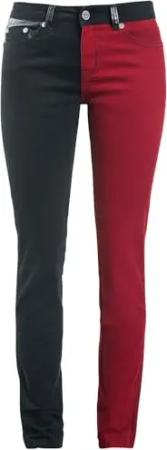 Damen schwarz-rote Stoffhose Slim-Fit im Colourblock-Design W33L34