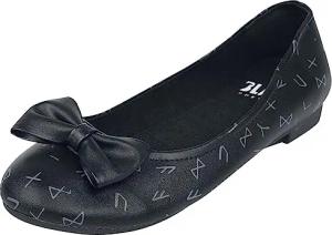 Damen Schwarze Ballerinas mit Schleife und Print EU39