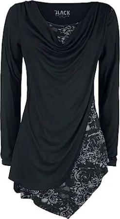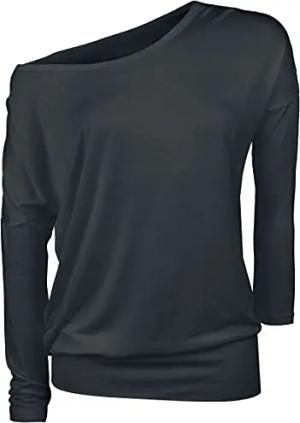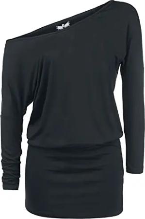 RED by EMP Fast and Loose Langarmshirt Damen - Schwarzes Longshirt mit U-Boot-Ausschnitt & Weitem Schnitt - Lässiges Damen-T-Shirt aus Viskose, exklusiv bei EMP