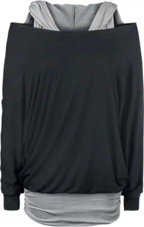 Damen schwarz-blaues Langarmshirt im Double-Layer-Look XXL