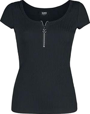 Damen schwarzes T-Shirt aus feinem RIPP-Stoff mit Rundhalsausschnitt und Reißverschluss-Detail 4XL