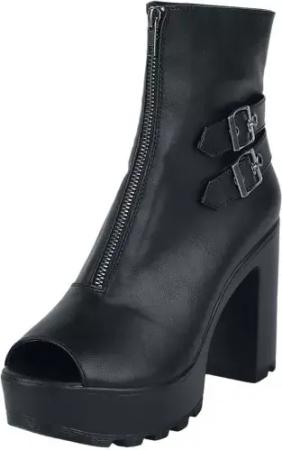 Gothic Stiefel - Peeptoe Stiefelette mit Reißverschluss - EU38 bis EU41 - für Damen - Größe EU38 - schwarz - Frauen - female