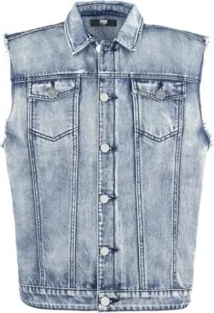 Herren ärmellose blaue Jeansweste mit Hemdkragen M