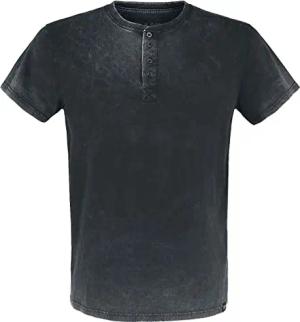 Herren dunkelgraues T-Shirt mit Waschung und Knopfleiste 3XL