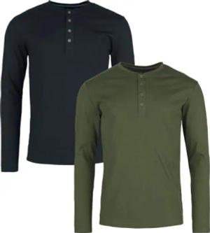 Herren Oliv-Schwarze Langarmshirts mit Knopfleiste Doppelpack XL
