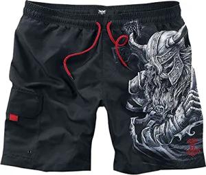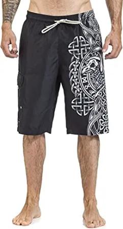 Herren Schwarze Badeshorts mit keltisch anmutendem Raben-Print S