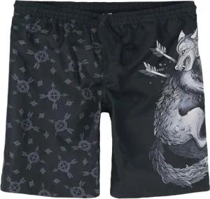 Herren Schwarze Badeshorts mit Wolf-Print L