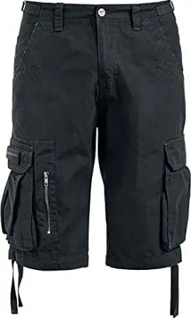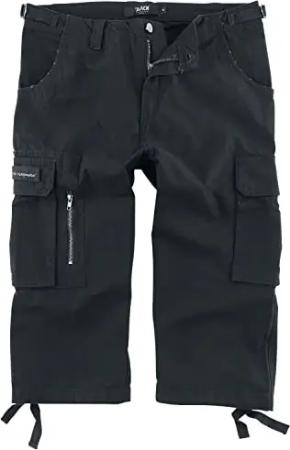 Herren Schwarze Dreiviertel Cargohose 3/4 Army Vintage Shorts mit Zwei Einschubtaschen XL