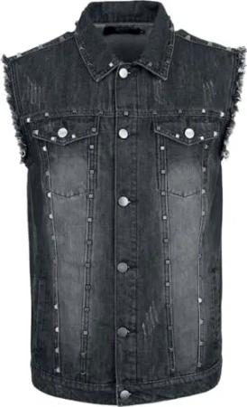 Herren Schwarze Weste mit Pyramidennieten im Used-Look XL