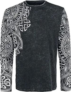 Herren schwarzes T-Shirt mit nordischen Runen Front und Backprint M