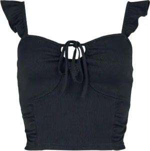 Top - Crop Top With Ruffles And Lacing - L bis XL - für Damen - Größe L - schwarz