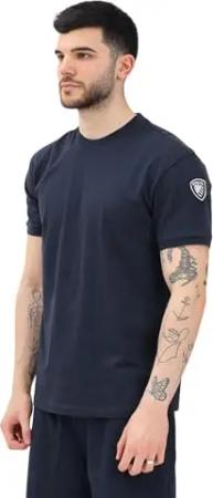 Blaues Kurzarm-T-Shirt für Herren mit Logopatch, blau, Small