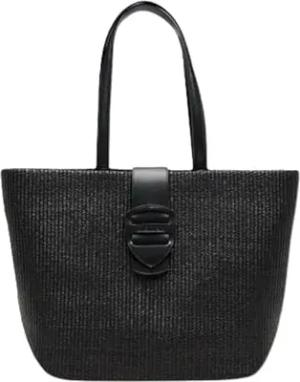 Tasche Damen S5ALA01 Raffia Tote Bag schwarz, Schwarz , Einheitsgröße