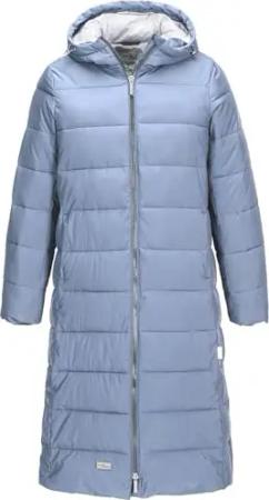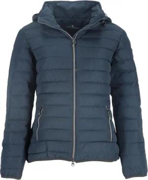 Damen Steppmantel Kaike mit verstellbarer Kapuze - Lange Steppjacke mit Innenfutter in Steel Blue Größe 40
