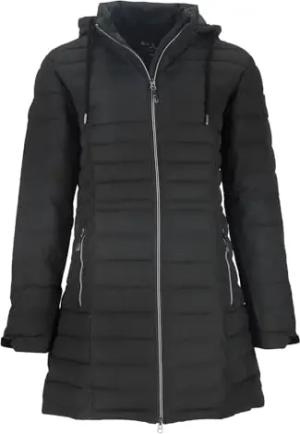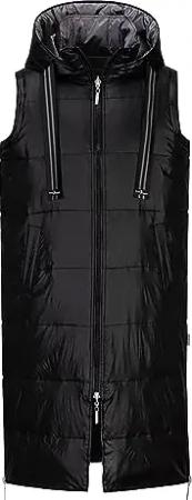 Damen Steppweste Longweste Kati mit abnehmbarer Kapuze - Lange Weste in Steppoptik in Schwarz Größe 36