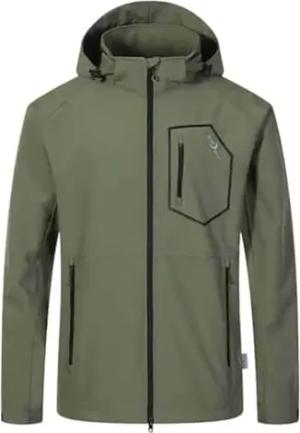 Herren Funktionsjacke Nick mit abnehmbarer Kapuze - Wasserdichte Outdoor-Jacke winddicht und atmungsaktiv in Oliv Größe XL