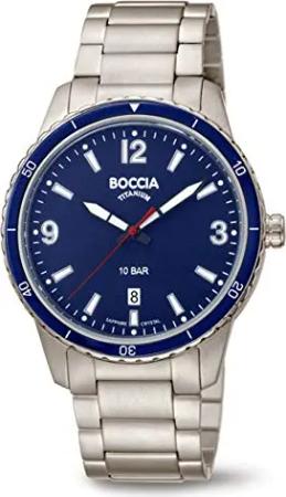 Sport Herren Armbanduhr mit Gehäuse aus Titan, in der Farbe: Silber, Armband aus: Edelstahl in Blau, Gehäusedurchmesser: 42 mm, 3635-04