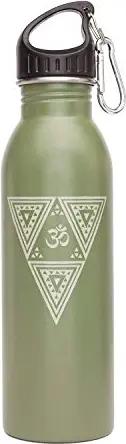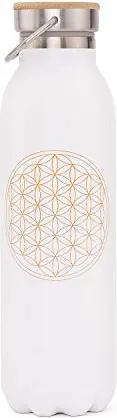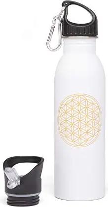 Edelstahl-Trinkflasche, superleicht, bunt bedruckt mit farbenfrohen Design-Motiven, 700 ml, inkl. Karabiner-Deckel und Sport-Top, für Sport, Reise und Freizeit (Blume des Lebens, weiß)