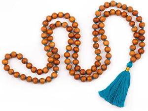 Mala Kette mit Sandelholz-Duft und farbiger Quaste in ozean-blau, 108 Perlen