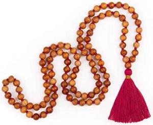 Mala Kette mit Sandelholz-Duft und farbiger Quaste in berry, 108 Perlen