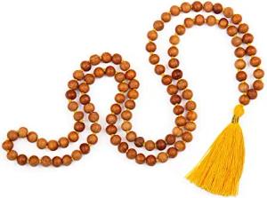 Mala Kette mit Sandelholz-Duft und farbiger Quaste in saffeon-gelb, 108 Perlen