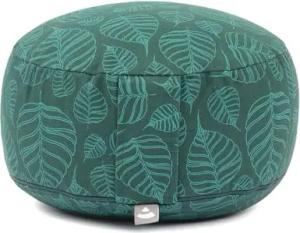 Meditationskissen RONDO | Abnehmbarer Bezug aus 100% Baumwolle | Bio-Dinkelfüllung | Höhe 14-20 cm | Praktische Trageschlaufe | Maharaja Collection (Bodhi Leaves/deep green)