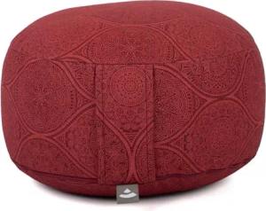Meditationskissen RONDO | Abnehmbarer Bezug aus 100% Baumwolle | Bio-Dinkelfüllung | Höhe 14-20 cm | Praktische Trageschlaufe | Maharaja Collection (MAYURI/dunkelrot)
