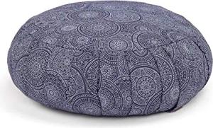 Meditationskissen ZAFU | Ø 34 cm | Maharaja Collection | Yogakissen mit Dehnfalten und Tragegriff | Bezug aus 100% Baumwolle | Sitzkissen mit Bio-Dinkelfüllung | Mandala/dunkelblau