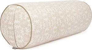 Yoga Bolster Ø 23 cm | Maharaja Collection | Abnehmbarer & Waschbarer Bezug aus 100% Baumwolle | Yogarolle mit Bio-Dinkelfüllung | Yogakissen für Restorative & Yin Yoga (Madurai/Ecru)