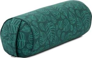 Yoga Bolster Ø 23 cm | Maharaja Collection | Abnehmbarer & Waschbarer Bezug aus 100% Baumwolle | mit Bio-Dinkelfüllung | Yogakissen für Restorative & Yin Yoga (Bodhi Leaves/Deep Green)