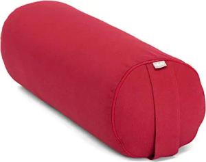 | Yoga Bolster ECO | 100% Bio-Baumwolle | Yogarolle mit Bio Dinkelfüllung | Waschbarer Bezug | Yogakissen rund für Restoratives Yoga Übungen | Groß ca. 65 x 22 cm | Bordeaux