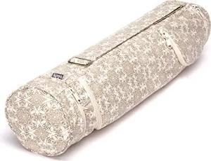 Hot Yoga Bag | Maharaja Collection | Yogatasche aus Baumwolle mit wasserfestem Innenfutter | Große Yogamattentasche | Tasche für Yogamatte und Zubehör | Raja/Taupe, Silber