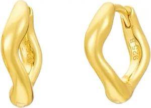 Ohrringe Silber 925. Asymmetrische Creolen gold, geschwungen. Schmuck Damen vergoldet mit 18 Karat (Silber und Gold) für Frauen und Mädchen.