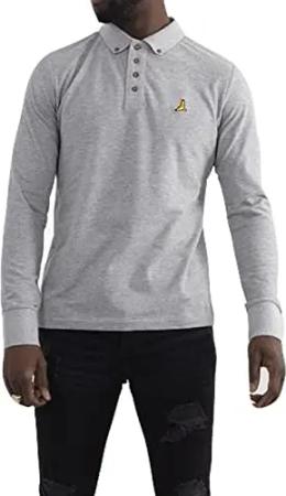 Herren-Poloshirt, langärmelig, Knöpfe, normale Passform, mit Riemen, Kragen, lässig, Baumwolle, Größe M, Hellgrau, Waschung, hellgrau