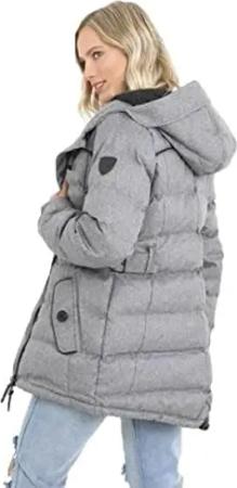 Langer Damen-Parka-Mantel im Fischschwanz-Stil, mit Kunstfell gefüttert, grey melange, 36