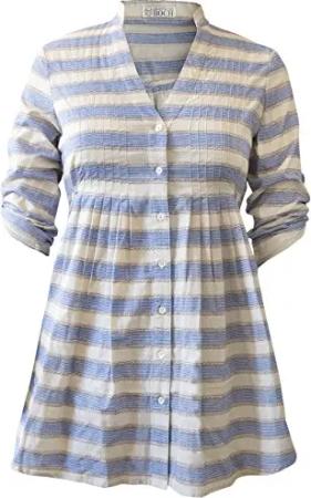 Damen - Ios Tunika beige/blau gestreift, Größe:38