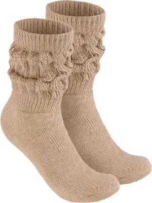 2 Paar Slouch Socken - Damen Schoppersocken für Fitness, Yoga, Workout, Gymnastik und Wellness - Knit Sportsocken für Frauen - Beige Größe 35-38