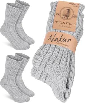 2 Paar Wollsocken - Wintersocken für Damen und Herren - Warm und Flauschig - Winter Socken Set mit Schafwolle - Thermosocken Stricksocken - Grau - Größe 47-50