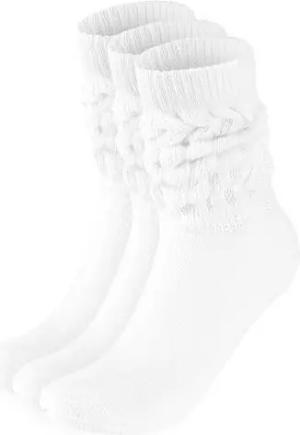 3 Paar Slouch Socken - Damen Schoppersocken für Sport und Freizeit - Lässige Retro-Socken für Frauen - Scrunch Knit Baumwollsocken - Weiß - Größe: 39-42
