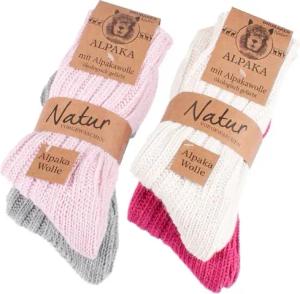 4 Paar Alpaka Socken mit Alpakawolle - Wintersocken Set für Damen und Herren - Pink Rosa Beige Grau - Größe 35-38