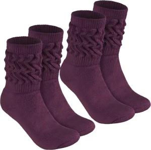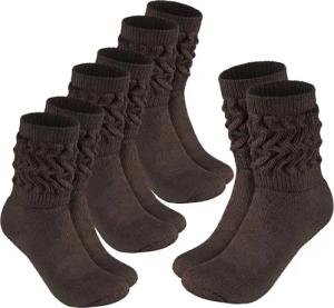 4 Paar Slouch Socken - Damen Schoppersocken für Fitness, Yoga, Workout, Gymnastik und Wellness - Knit Sportsocken für Frauen - Dunkelbraun Größe 35-38