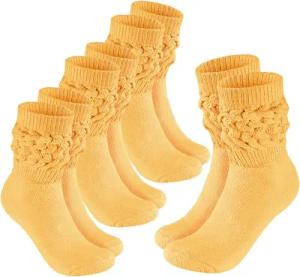 4 Paar Slouch Socken - Damen Schoppersocken für Fitness, Yoga, Workout, Gymnastik und Wellness - Knit Sportsocken für Frauen - Hellgelb Größe 35-38