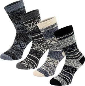 4er Pack Damen Norweger Socken - Warme dicke Wintersocken - 4 Paar Kuschelsocken Thermosocken für Winter und kalte Tage - Gemütlich und Atmungsaktiv 35-38 - Schwarz und Weiß