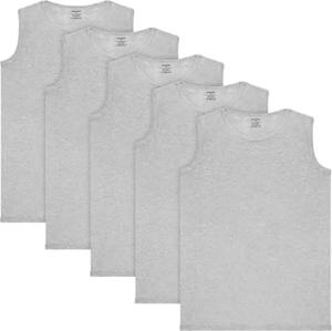 5er Pack Herren Muskelshirt Tank Top Unterhemd - Rundhals Ausschnitt - aus hochwertiger Baumwolle (glatt) - Extra Lang - Nahtlos - Hellgrau - Größe L