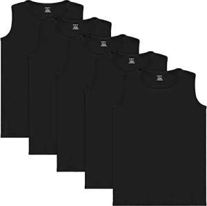 5er Pack Herren Muskelshirt Tank Top Unterhemd - Rundhals Ausschnitt - aus hochwertiger Baumwolle (glatt) - Extra Lang - Nahtlos - Schwarz - Größe XL